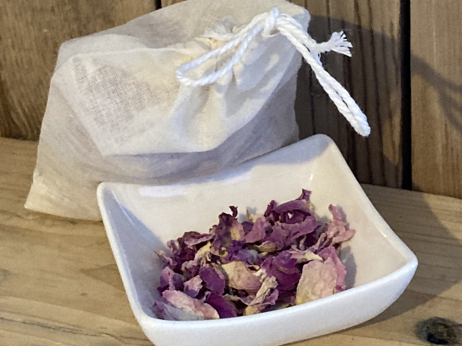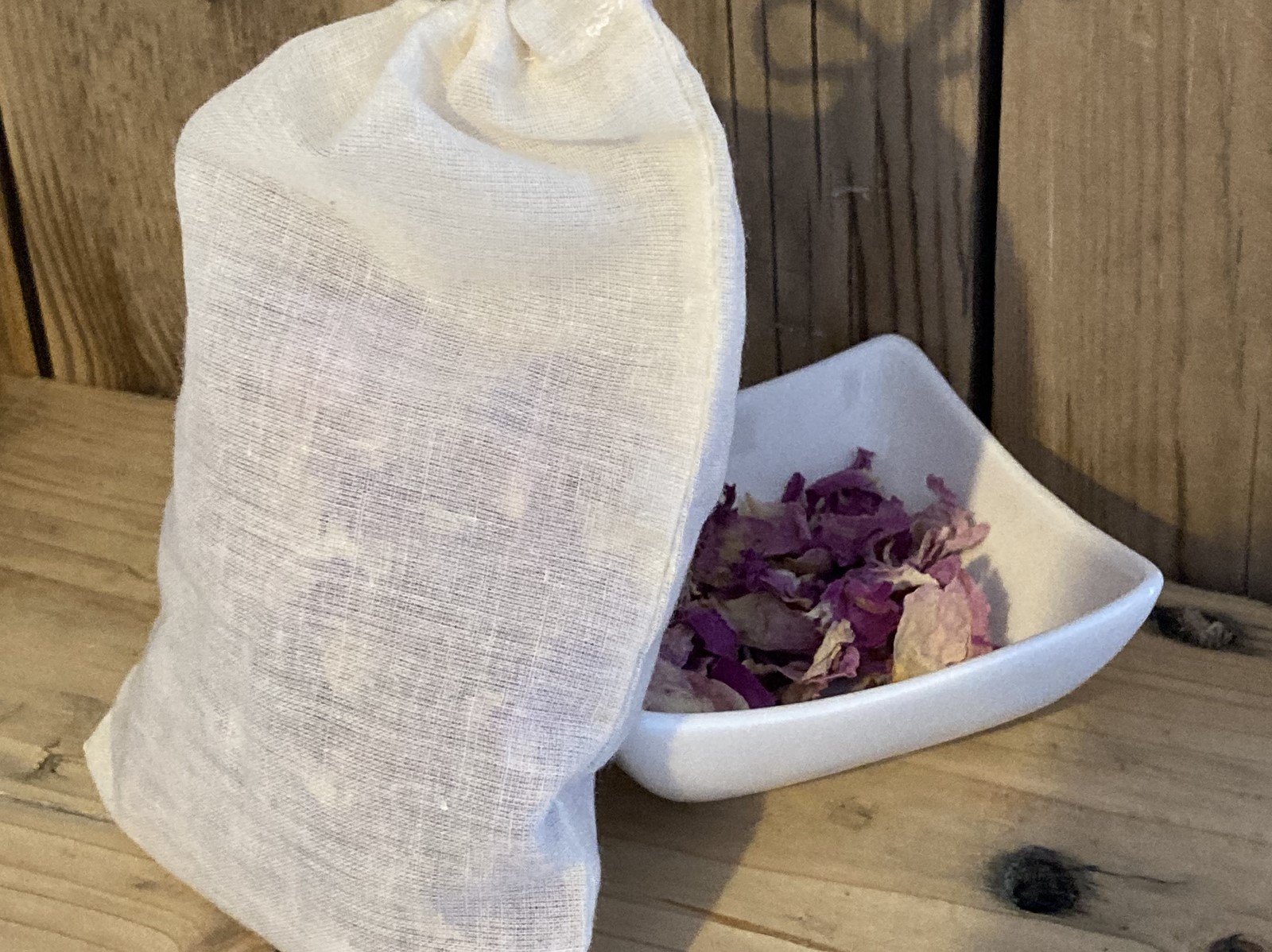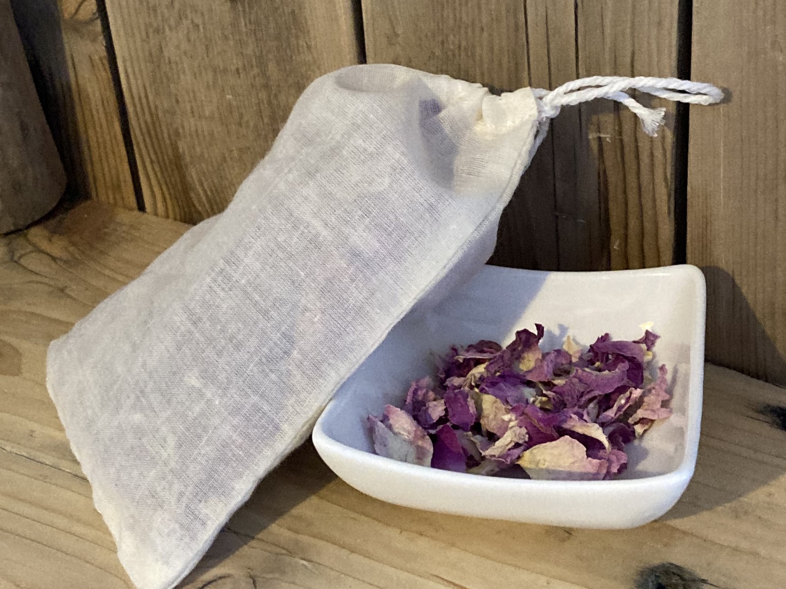 Je t'ai préparé des pochons coton de 10 gr de pétales (poids net hors pochon). C'est un poids largement suffisant pour préparer plusieurs tisanes, 1 bon litre de macérât huileux, ou carrément quelques pains de savons en saponification à froid. Ils sentent merveilleusement bon.